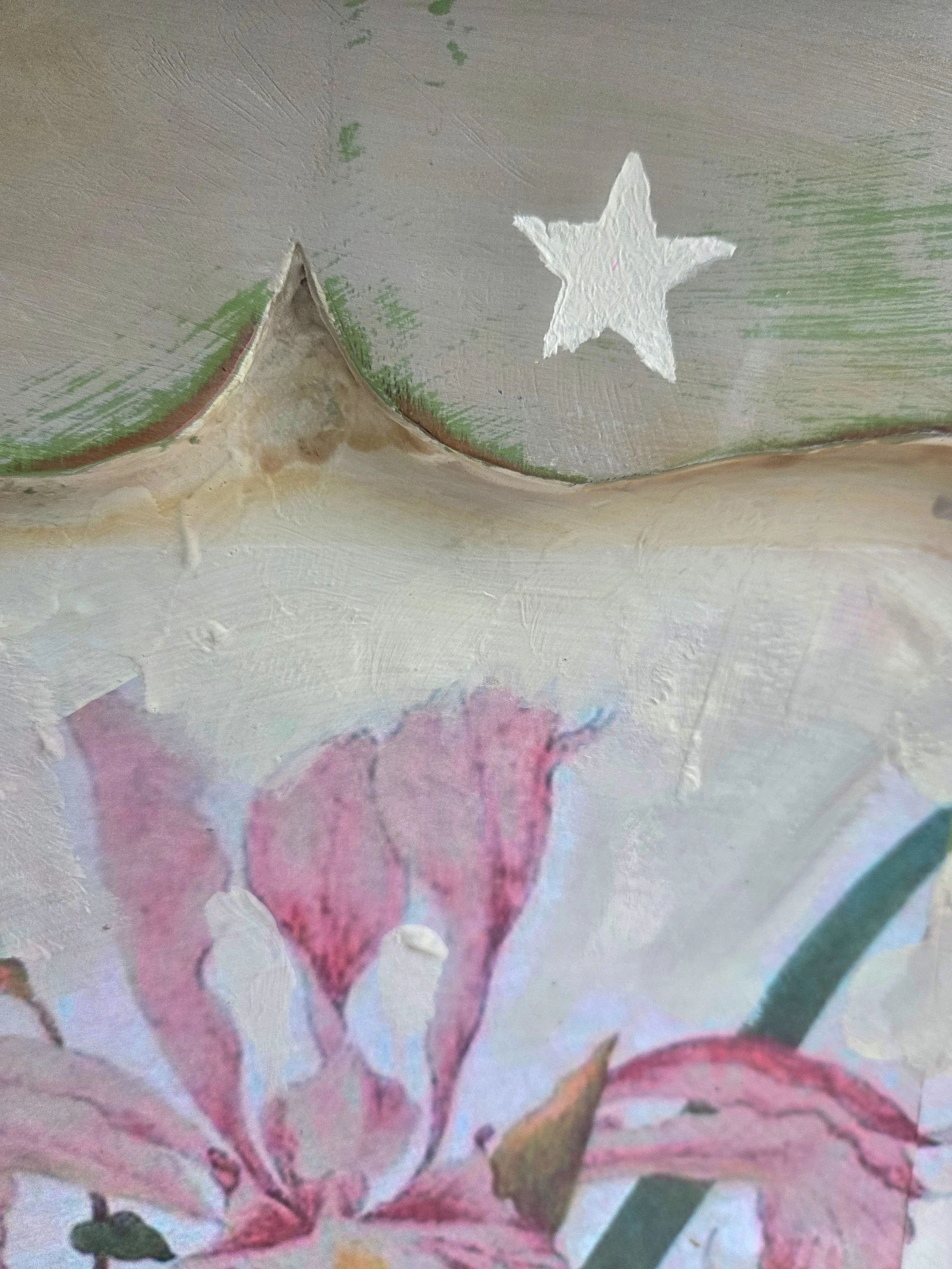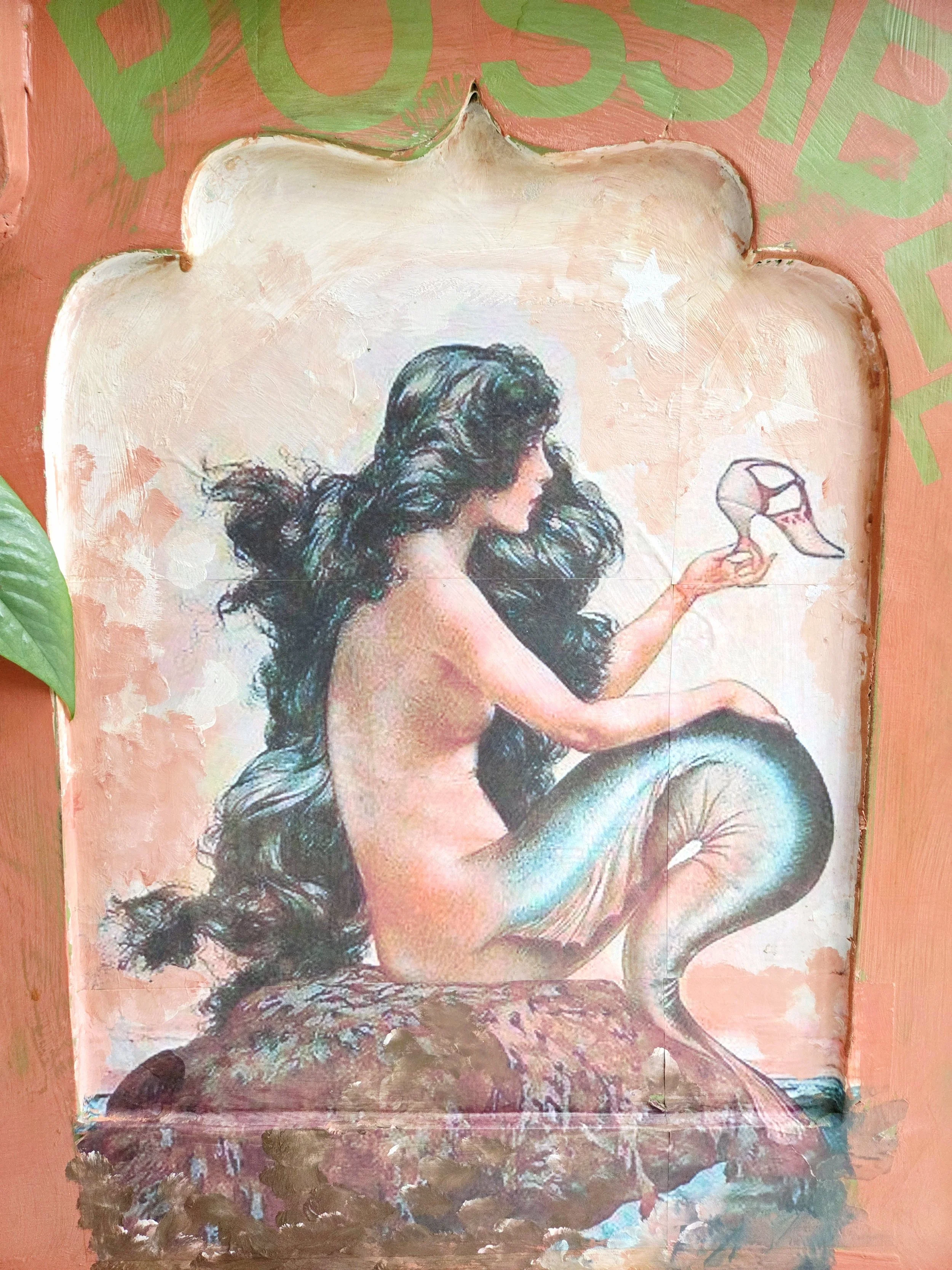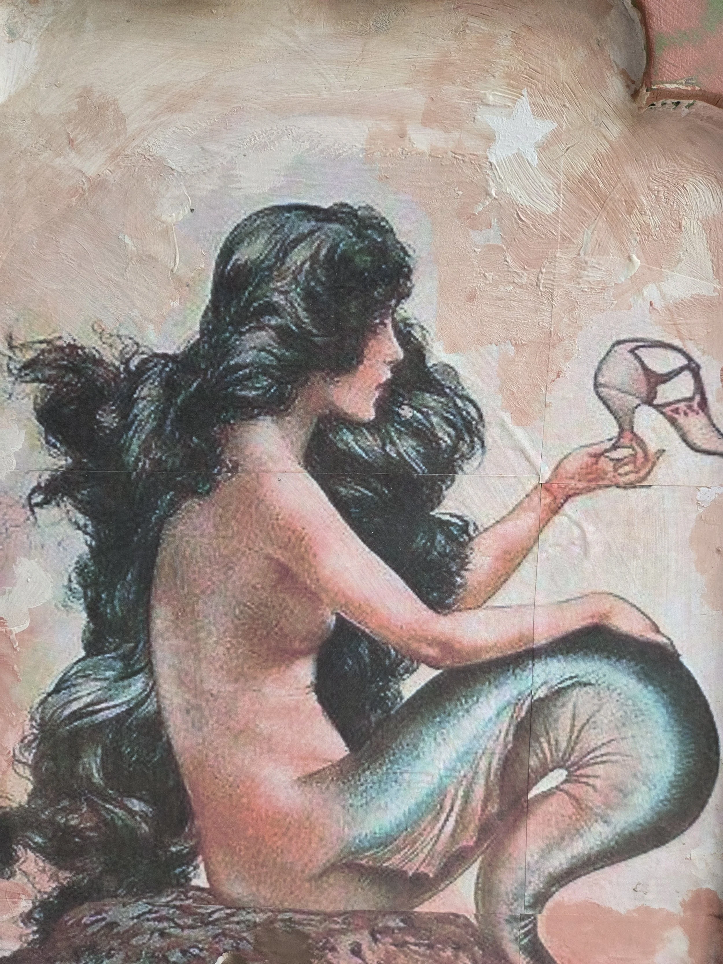 The decoupage consists of a vintage magazine cover and an antique botanical illustration from the 1600s by Maria Sybilla Merian (a favourite of mine).