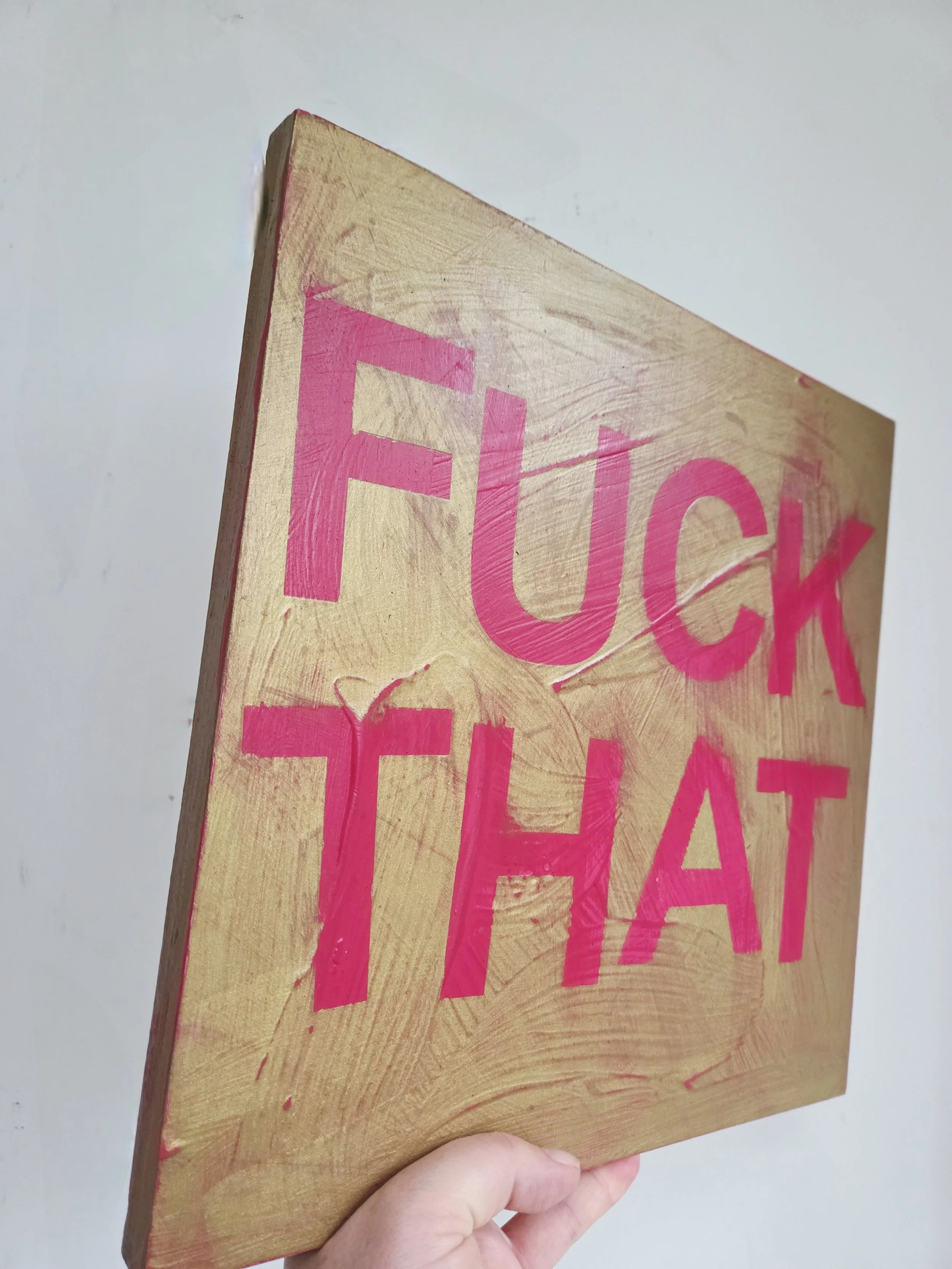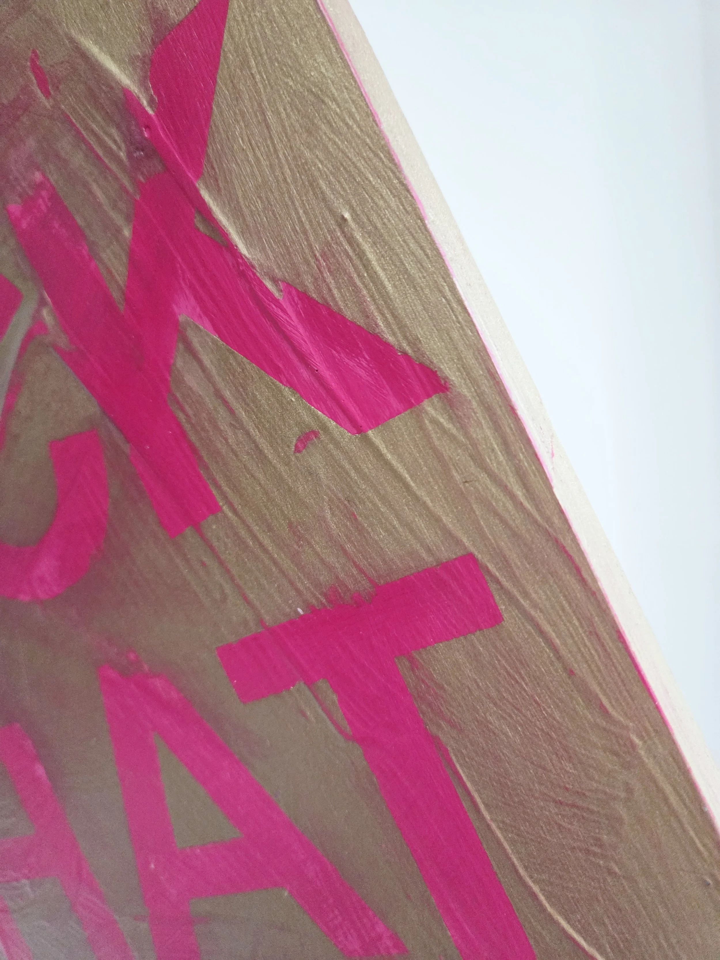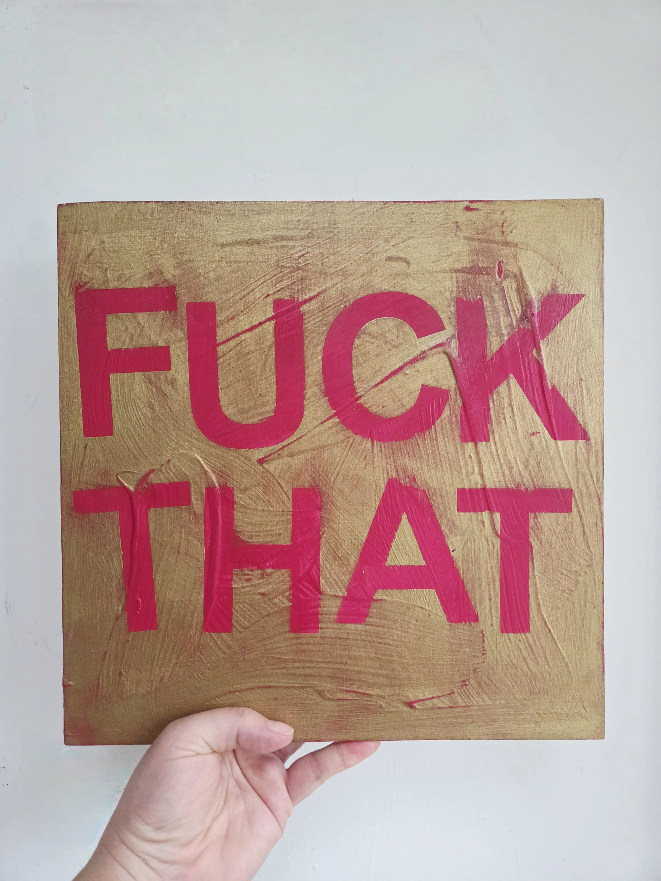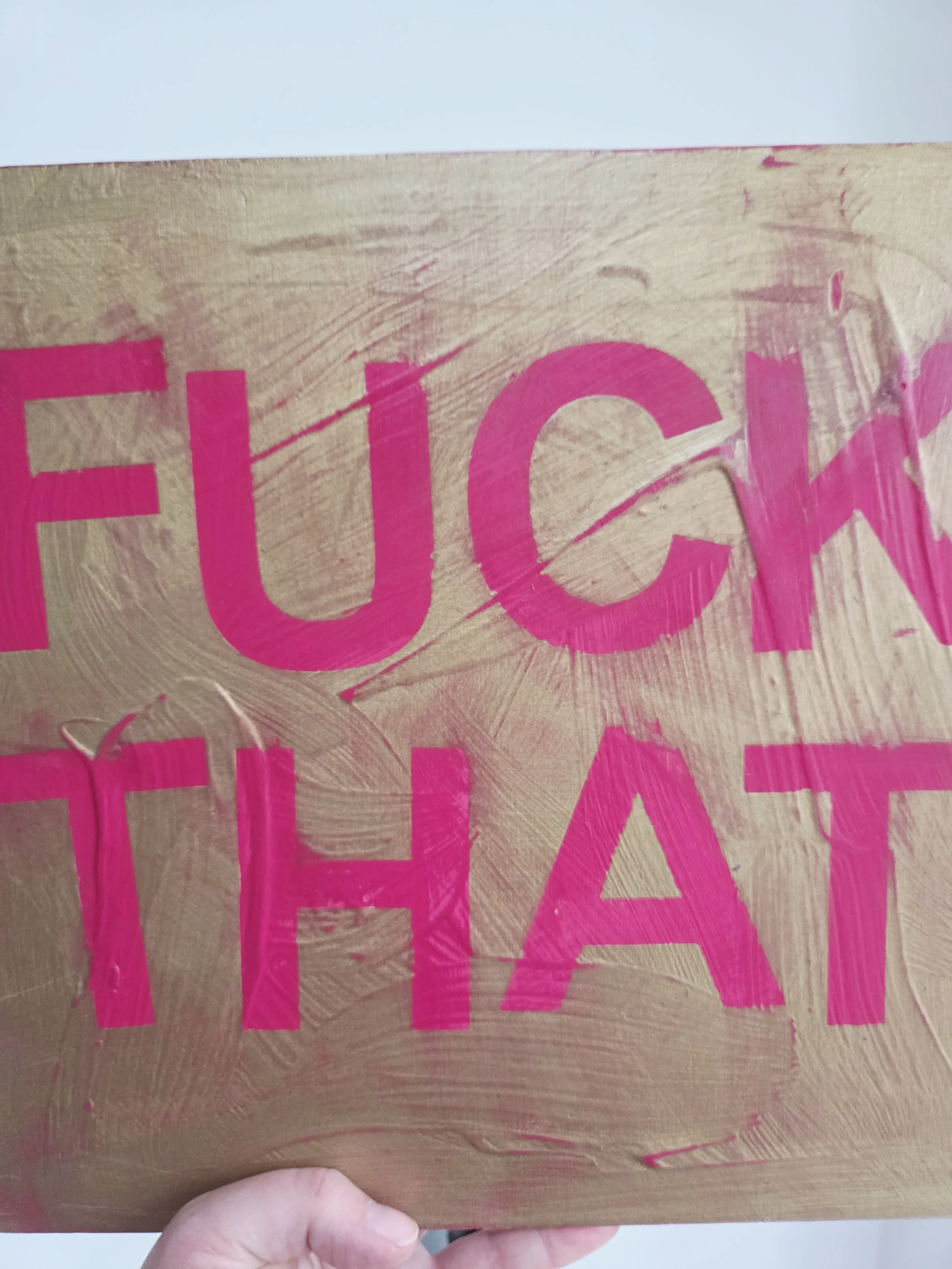 A ply panel, painted and distressed with a sassy or wholesome phrase.
