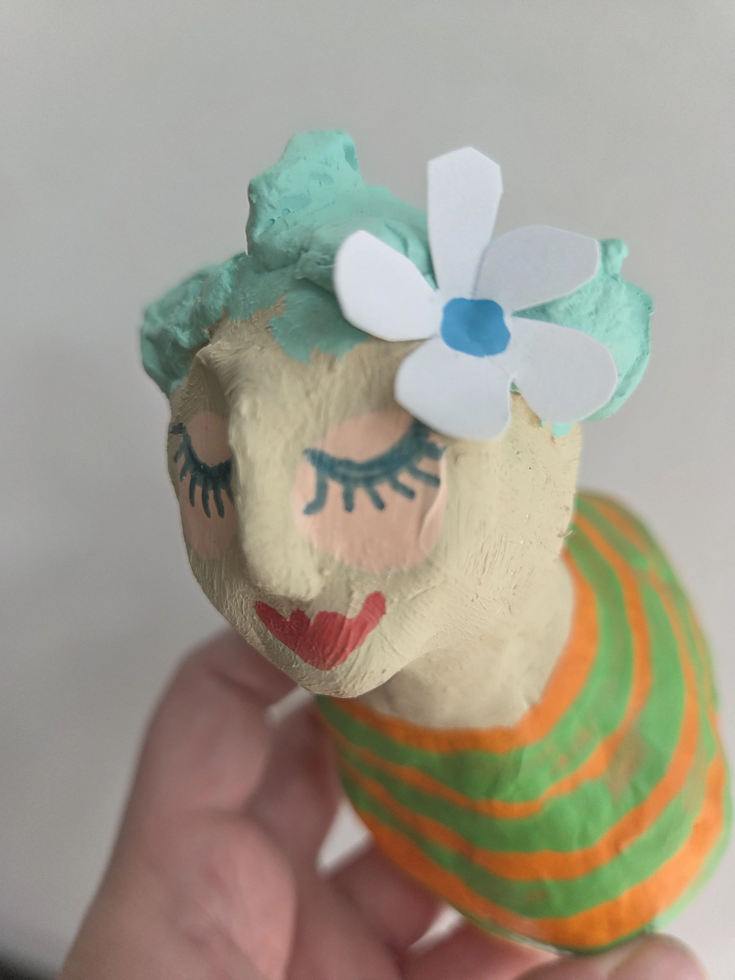 A little paper mache cat with a cardboard base.
