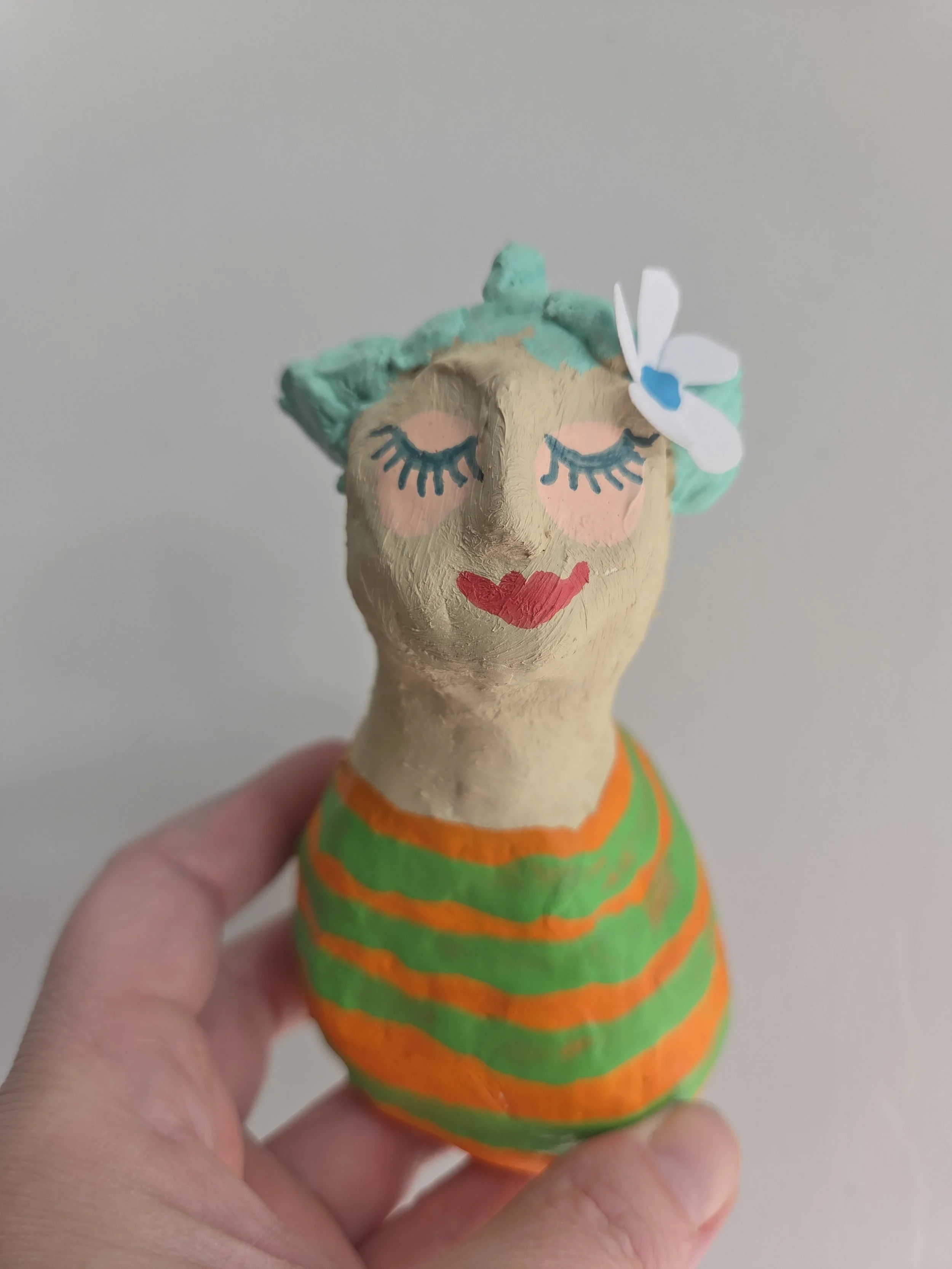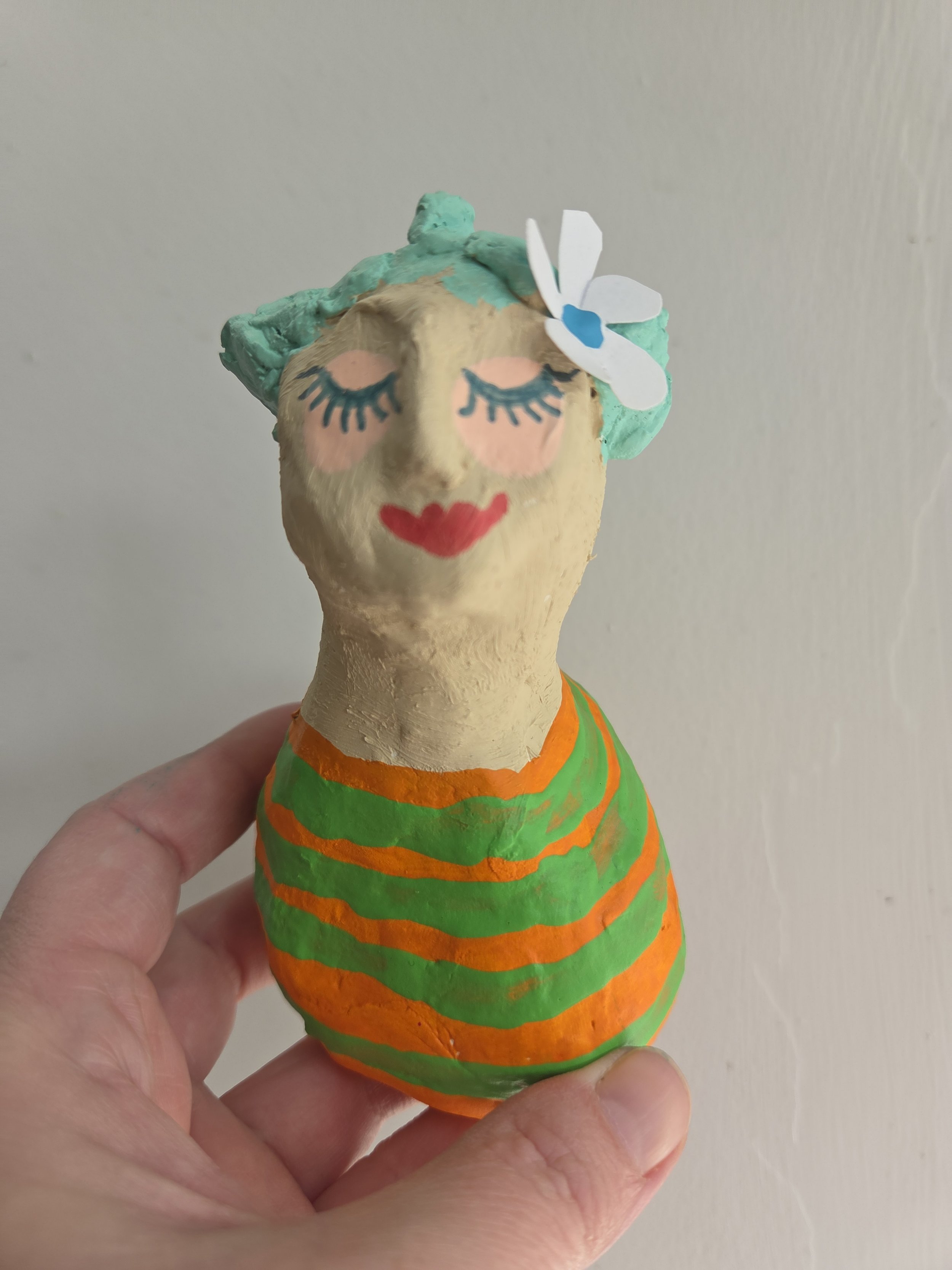 This has been rustically made from various materials including paper mache and has been finished with a matt lacquer. Display in a dry place, dust with a dry paintbrush.