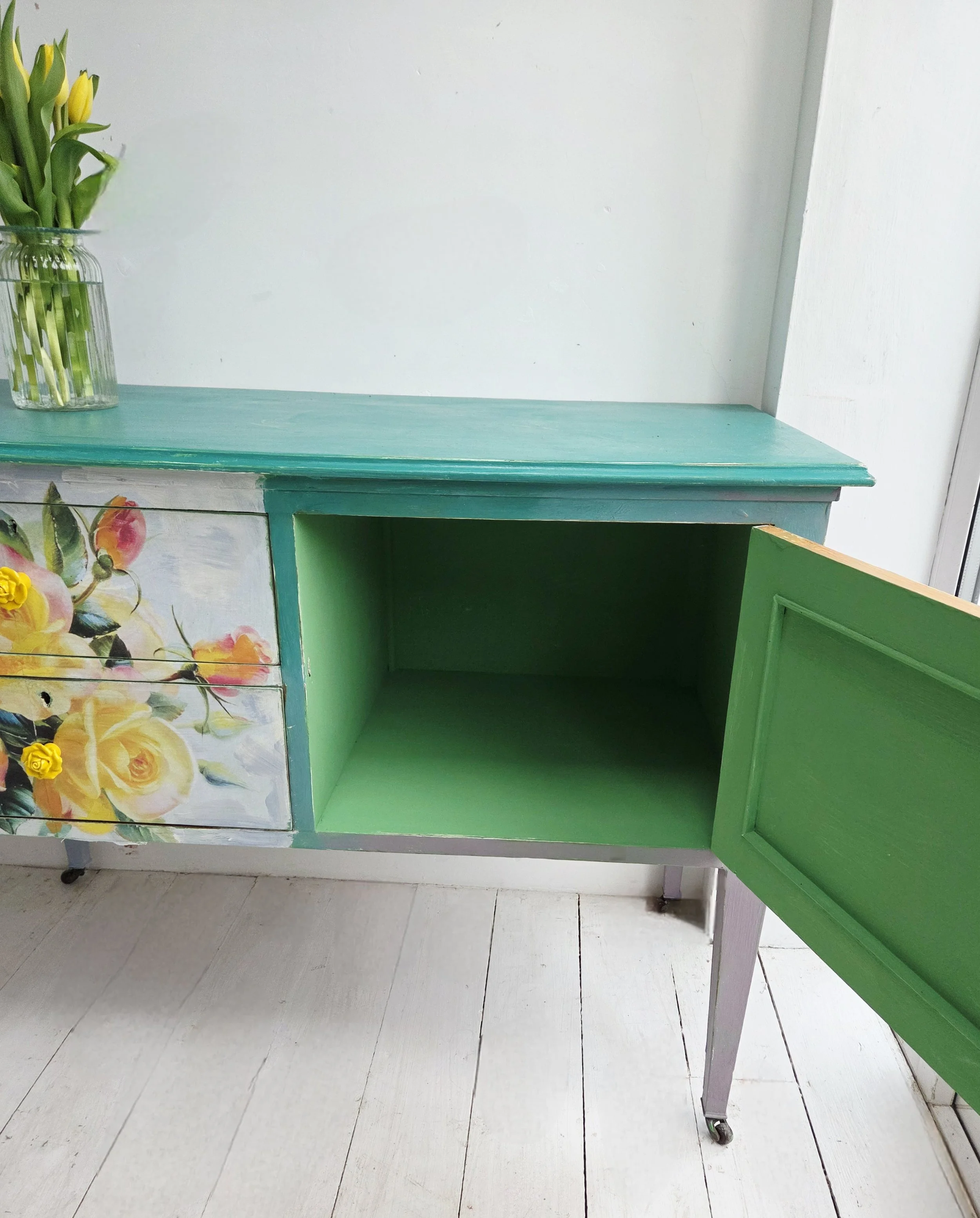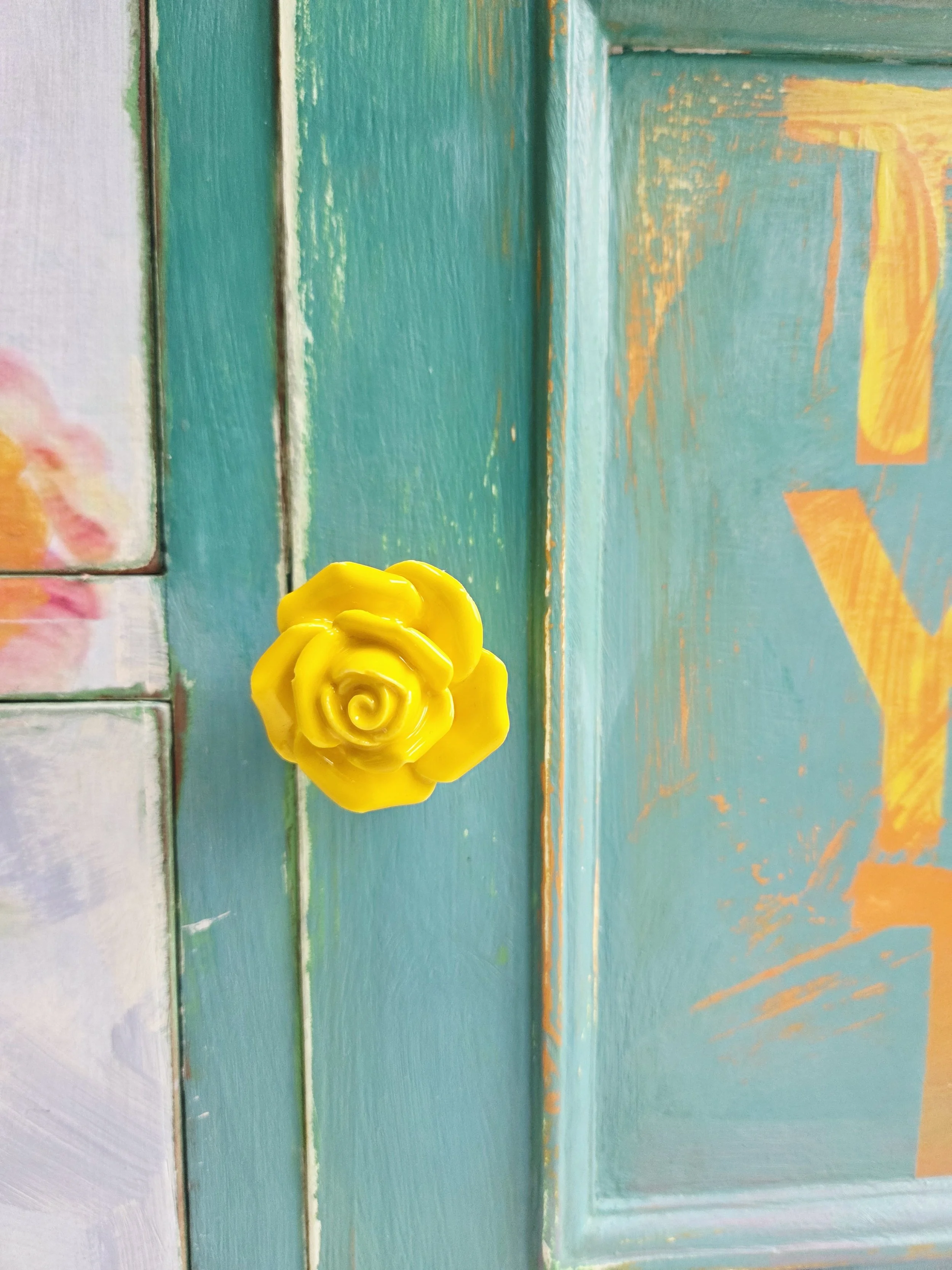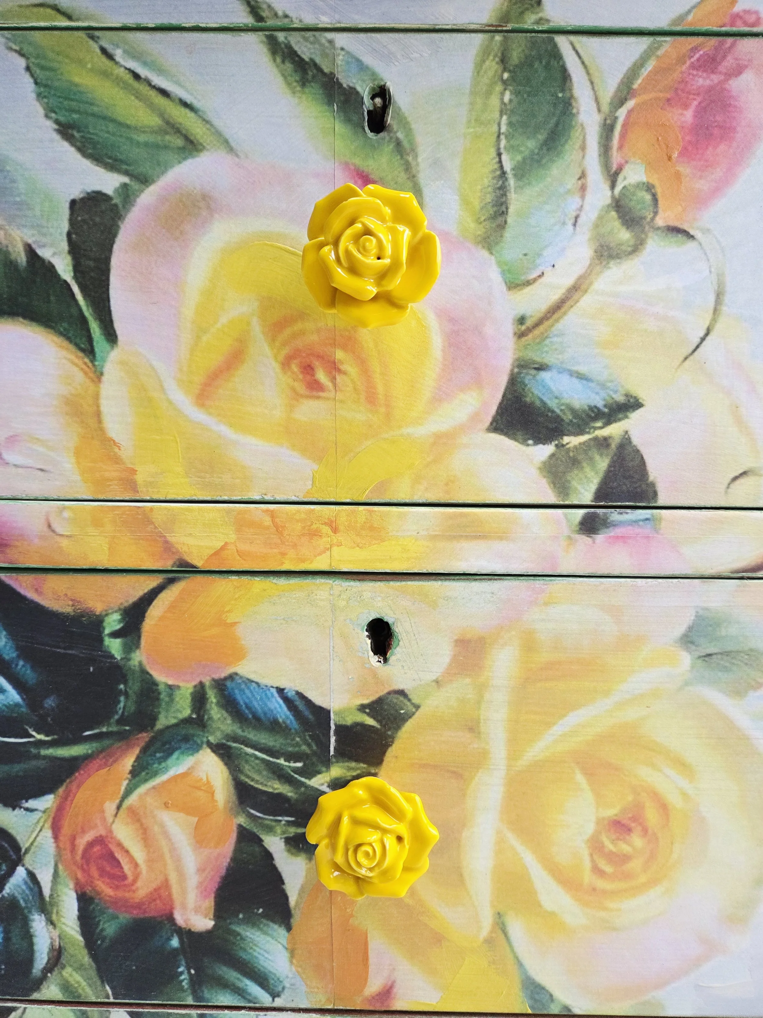 I have replaced the handles with ceramic yellow rose pulls.
